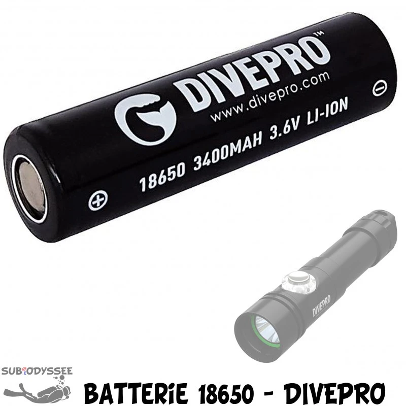 Batterie rechargeable Lithium-ion 18650 d’origine Divepro pour les phares :