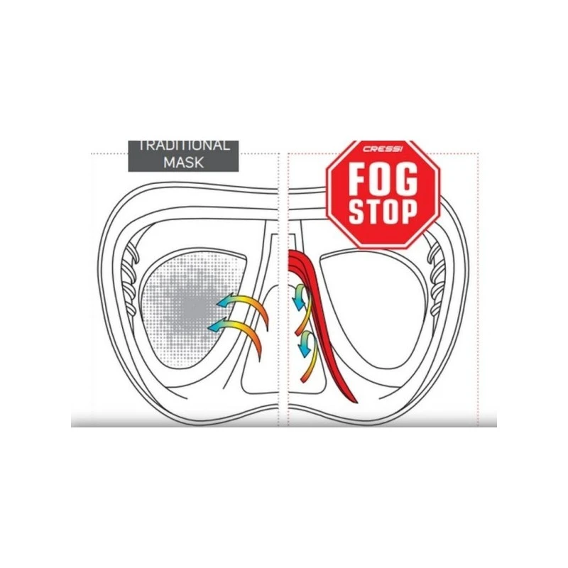 Grâce à la disposition des verres en oblique, le Calibro est le seul masque Cressi combinant un volume intérieur minimal & un champ de vision particulièrement étendu.